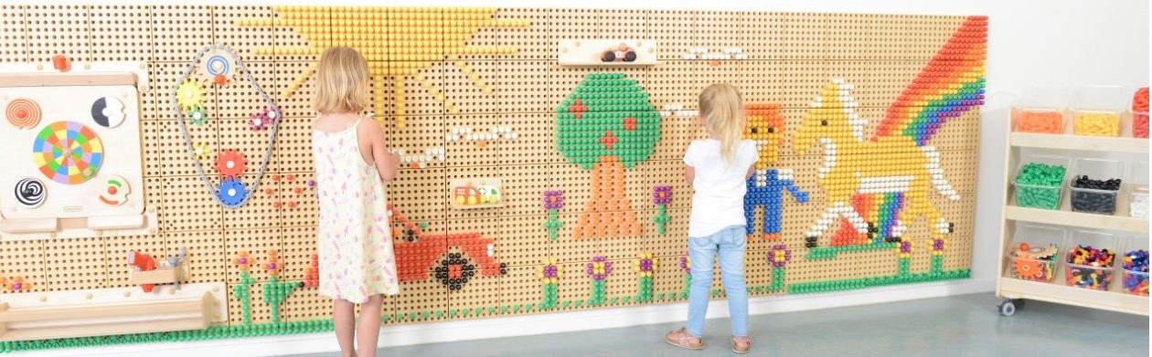 De wanden bieden eindeloze mogelijkheden voor open ontdekkend leren. De kinderen worden erdoor aangetrokken en gaan automatisch bouwen, schroeven, uitproberen, samenwerken, problemen oplossen, enz., enz. Als ze iets bouwen werkt het ook echt! Er zijn ontzettend veel hulpmiddelen, zoals gereedschappen, tandwielen, pluggen etc. beschikbaar, zodat uw kinderen elke dag weer een nieuwe uitdaging hebben om te ervaren en te ontdekken.